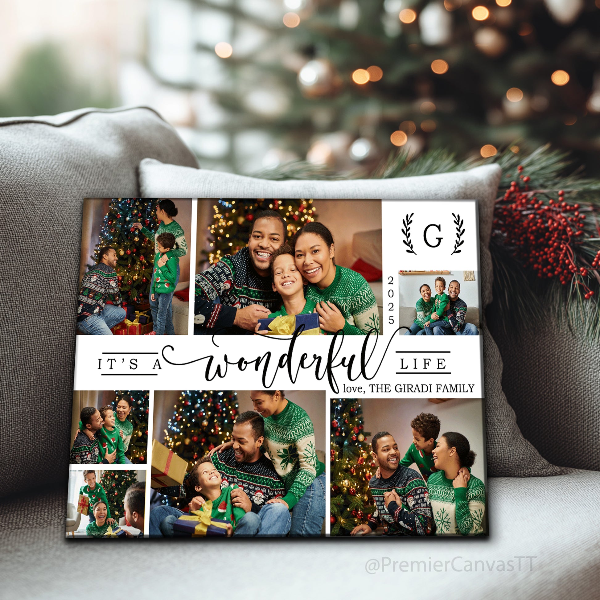 Celebrate love, laughter, and togetherness with this beautifully designed family photo collage canvas. This design features a warm holiday-inspired layout with multiple photo spaces arranged in a stylish storytelling format — perfect for capturing your favorite memories in one stunning display.